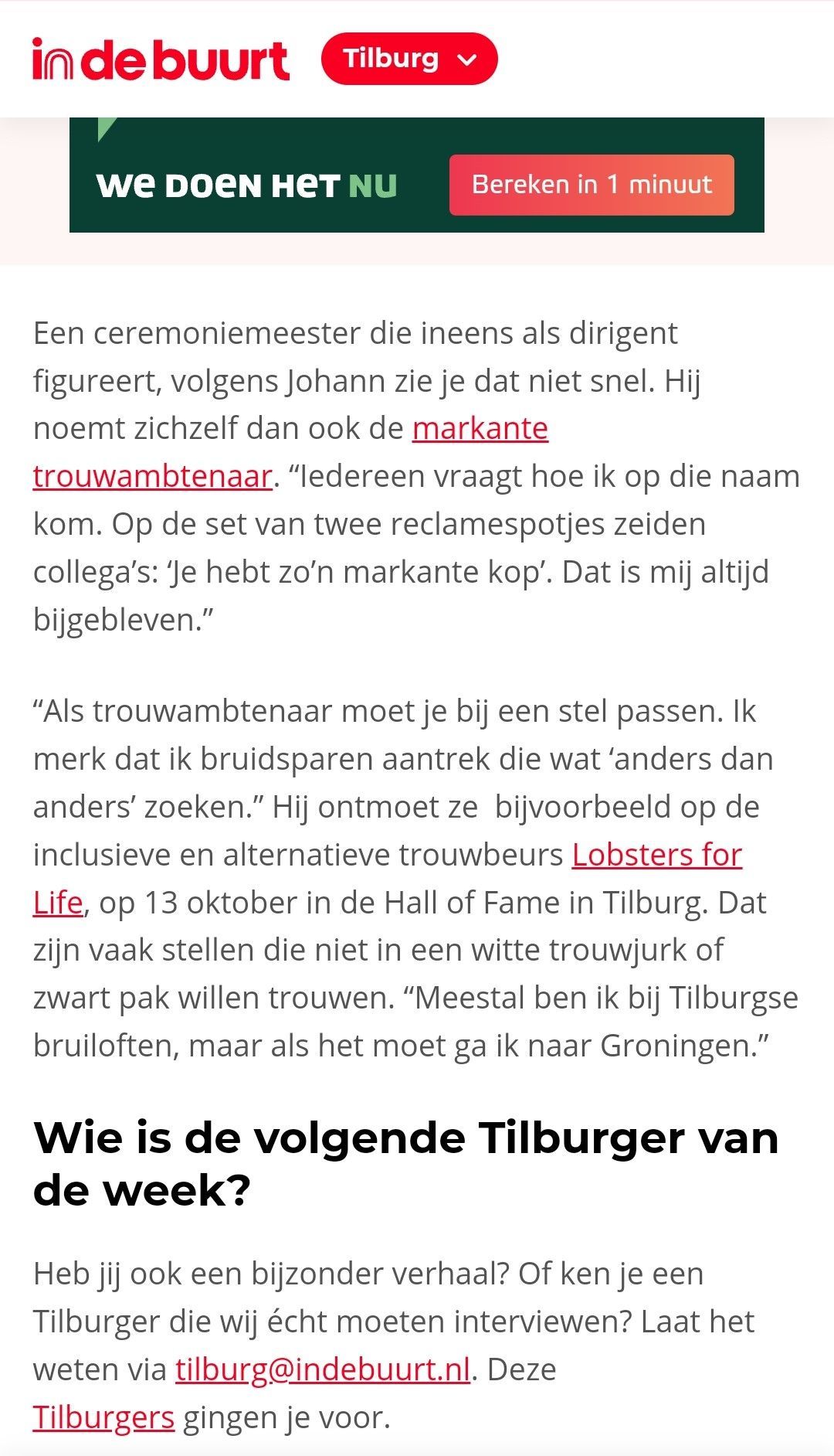 Ik was geïnterviewd door Brabants Dagblad en In de buurt Tilburg. Ik was blij verrast dat dit artikel op mijn verjaardag gepubliceerd werd. Lees het in de knipsels.